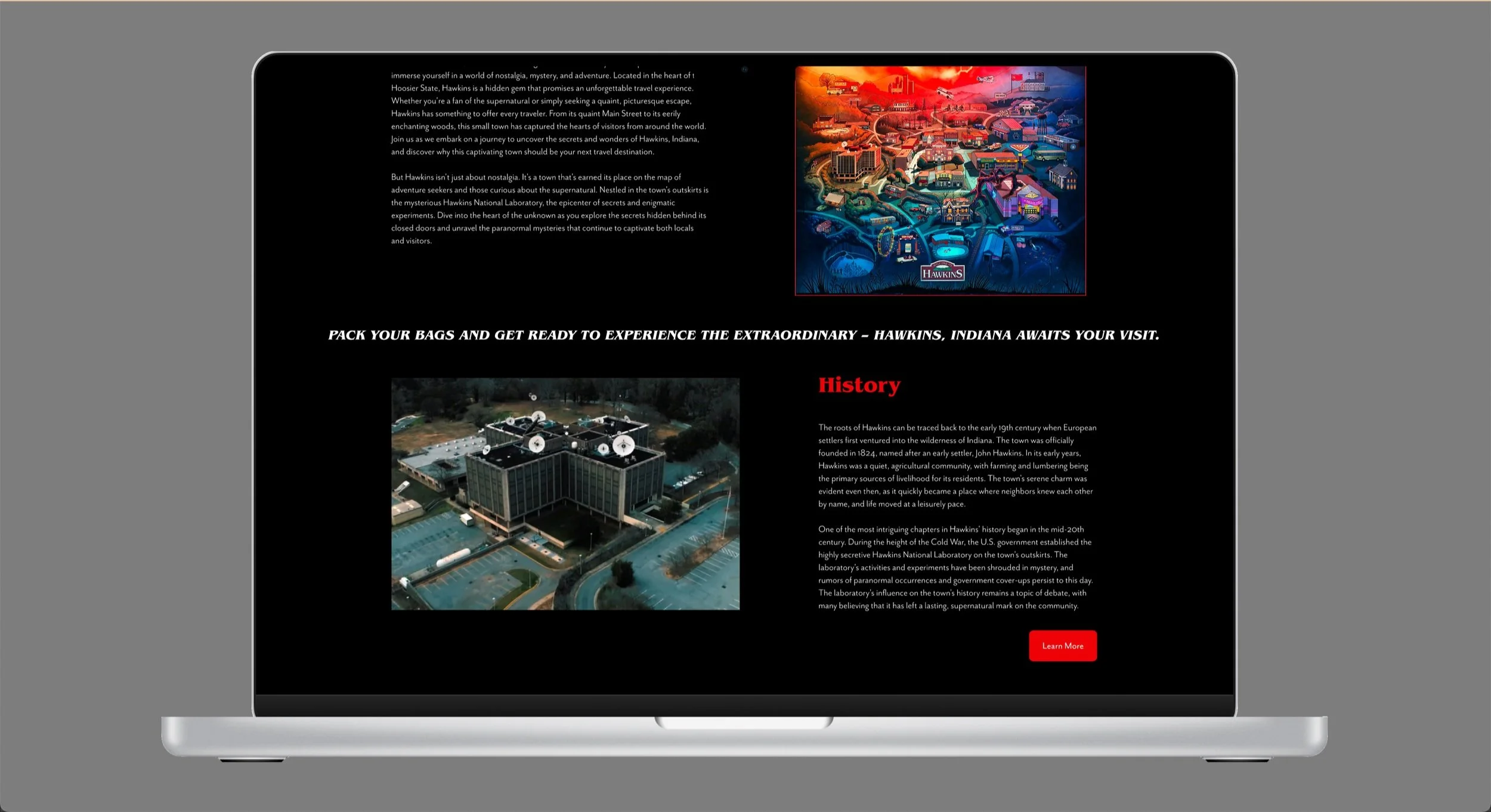 Below is a coded website for Hawkins, Indiana, a small town featured in the popular Netflix show, Stranger Things.